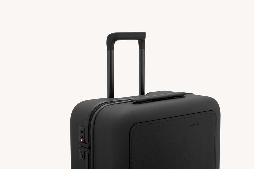 Small+ is a carry-on size for most airlines. Comes with a seamless PC pocket accented with a belt.